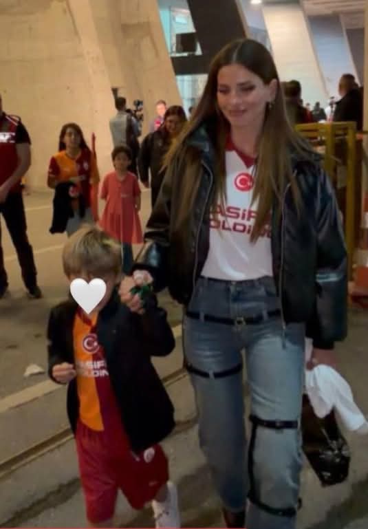 Ubicada en la tribuna junto a sus hijos, la ex Casi Ángeles combinó clima futbolero con una apuesta de alta gama. Eligió la camiseta oficial del Galatasaray, una campera de cuero oversize y una actitud relajada que se robó más de una cámara.